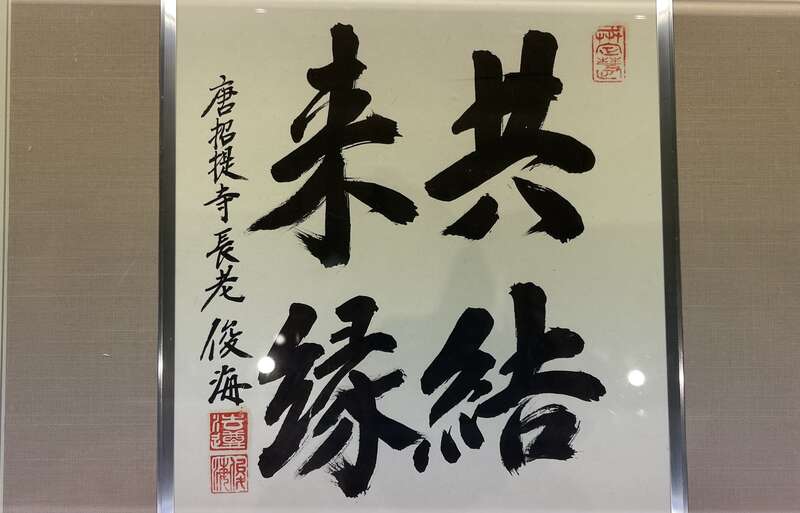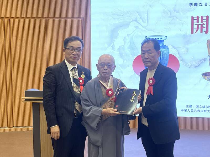 92岁的来自奈良唐招提寺第85代方丈松浦俊海专门为此次展览题写的《共结来缘》四字,并专门来到开幕式现场,他在讲话时追溯了唐代鉴真大师饱经险阻、六次东渡的往事,以及“山川异域,风月同天”的千古美谈。“中秋节是一个好日子,中日沟通源源不绝,不仅是汉字,更对日本文明发生巨大影响,‘China’便是瓷器,更是中华文明的标志,这一展览让来到世博会的观众充沛感受到中日文明沟通的巨大含义。”