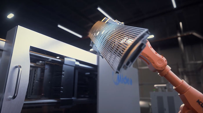 这种看似“返璞归真”的设计背后,是多项关键工艺的硬核支撑:为打造一米四长的弧形格栅曲面,美的采用五轴曲面精密加工工艺,将格栅精度控制在0.01毫米(相当于头发丝的十分之一),确保气流通过时的顺滑度;而1000吨级电动注塑机的引入,则完全解决了大尺寸曲面部件易变形的行业难题,保障了送风结构的长期稳定性。